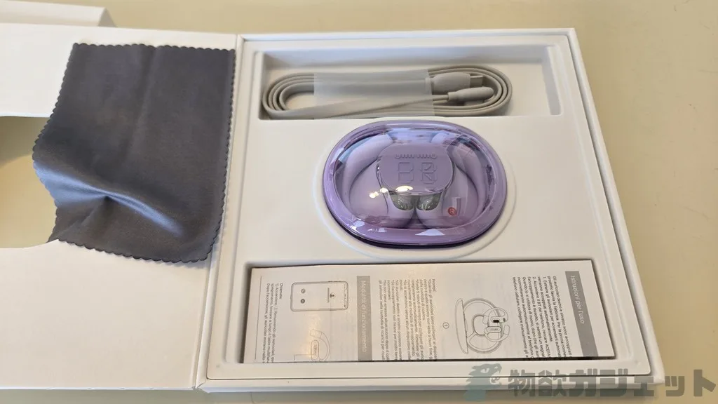 同梱品はマニュアル、クロス、USB Type-Cケーブル、イヤホンケース、イヤホン本体となっています。