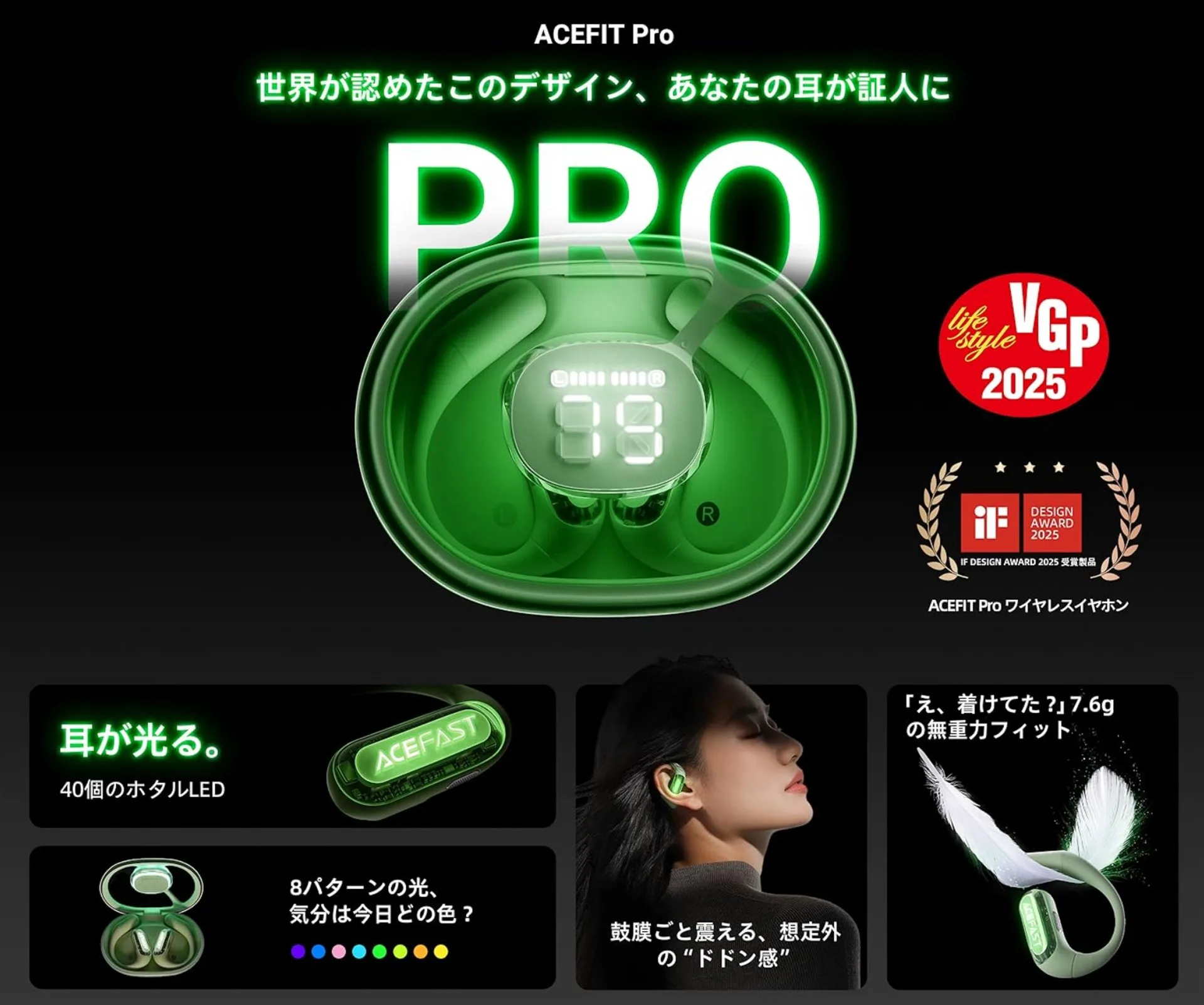 ACEFIT Proは、耳を塞がないオープンイヤー型ワイヤレスイヤホン。