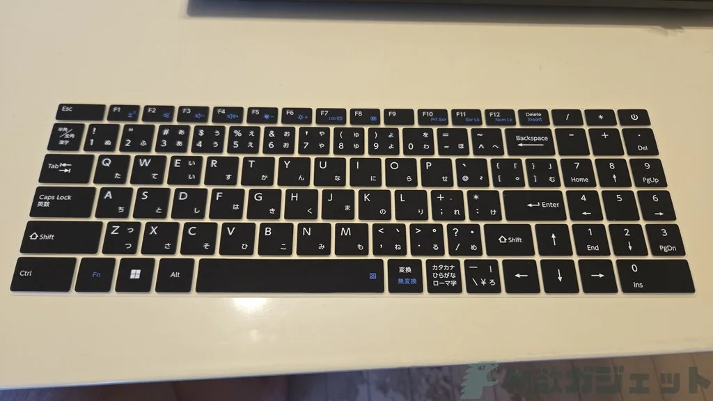 キーボード。テンキー、カーソールキーが他キーと隙間無く繋がっていてEnterも比較的小さめの為、ブラインドタッチでは慣れが必要なキー配列です。
