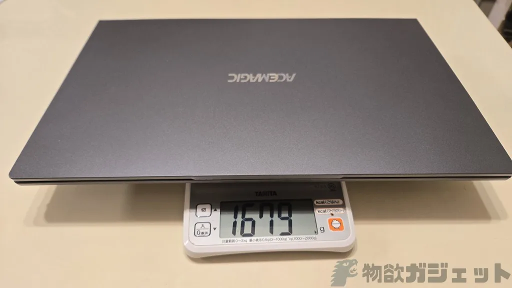 重さは1679g。15.6インチのラップアップPCとしてはちょい重いぐらい。でも1kg台の為、部屋の中で持ち運ぶ分には全く支障ない。