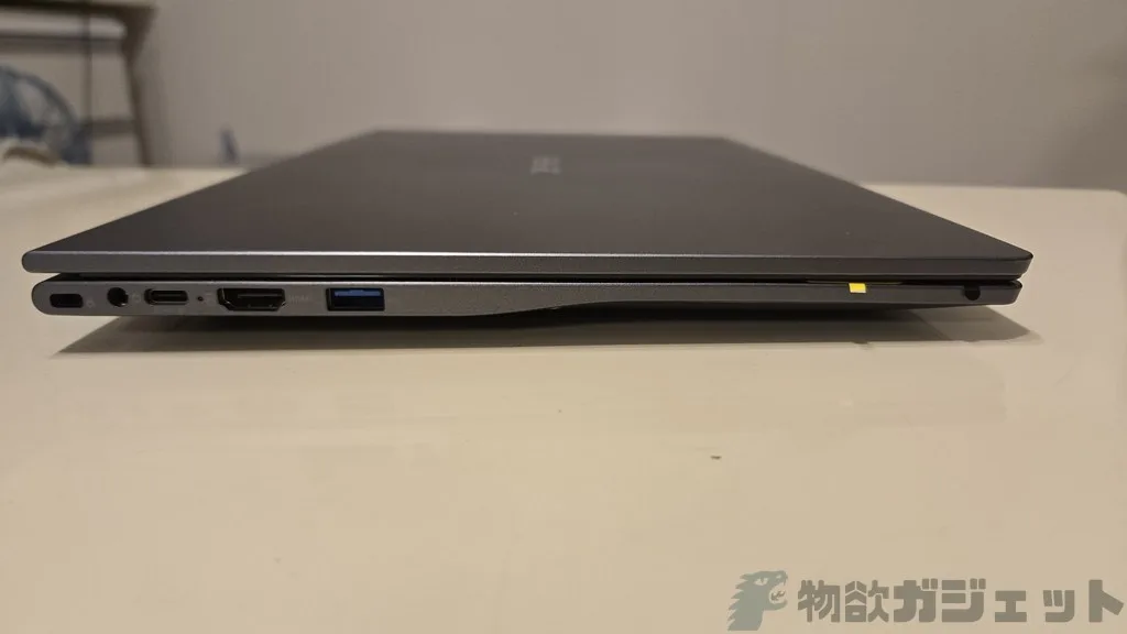 またノートPCでは珍しくメモリとSSDを共に増設できるデュアルスロット仕様の高い拡張性も魅力で、これにより購入後のスペックアップも容易です。PD充電対応のUSB-Cポートなど接続端子もあり、ACアダプタだけでなくUSB PD 60W以上のデバイス(充電器/モバイルバッテリー)での充電の道があるのも柔軟性があって助かります。