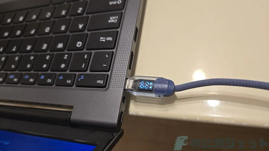 前述のようにUSB Type-C端子はUSB PD 60Wを繋ぐ事で充電可能です。