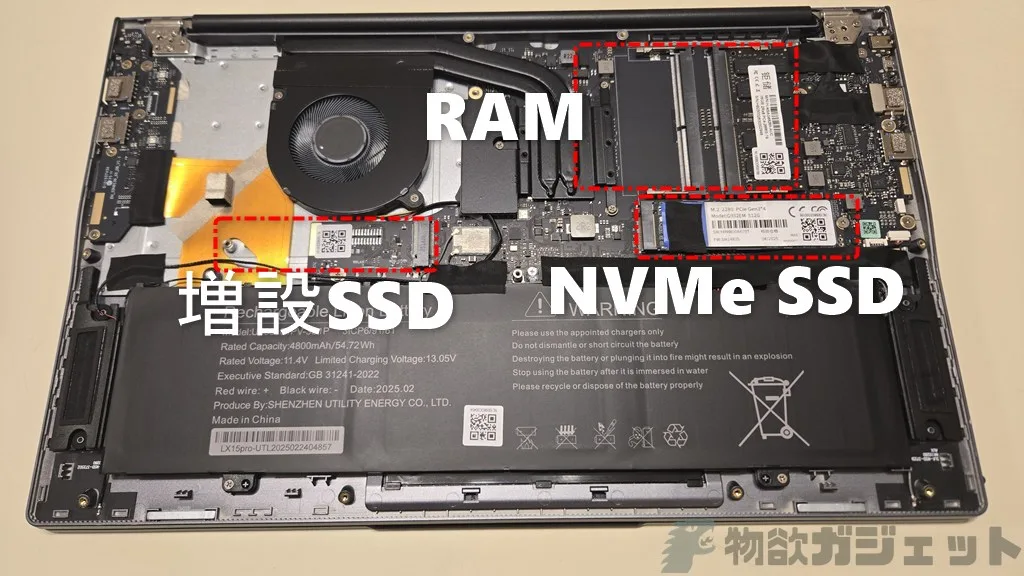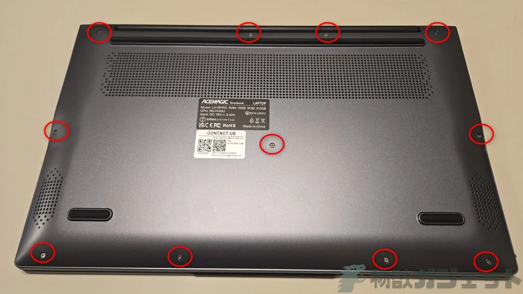 ACEMAGIC LX15Proの大きなメリットの一つが、メモリもSSDもノートPCなのに”増設”ができてしまう点。