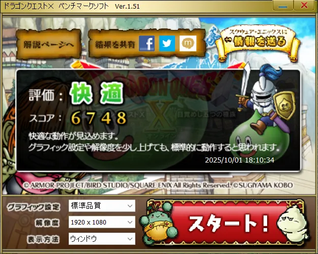 続いてドラゴンクエストX ベンチマークでは、とても快適となりました。だいたい70-80fpsは出ているので、ドラクエXは余裕。