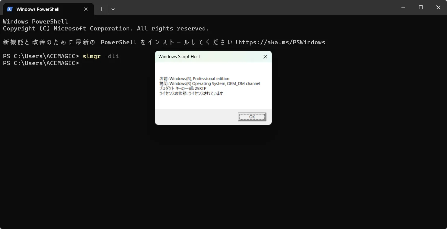 ミニPCあるあるで、Windows 11 Proのライセンス形態が、ボリュームライセンスかOEMバージョンか気になる所です。