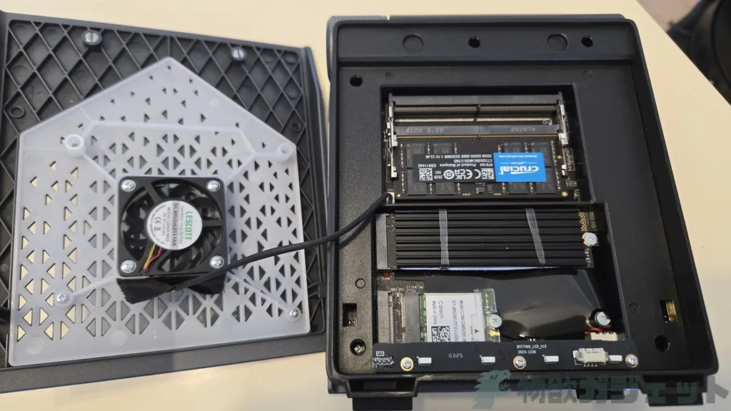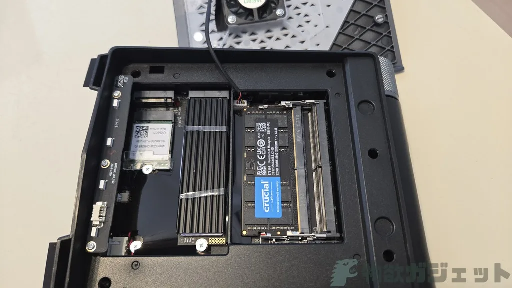 搭載されているSSDはNVMe 1TB SSDで既に搭載。ヒートシンクと蓋側にファンもあり、熱対策もしっかりしています。