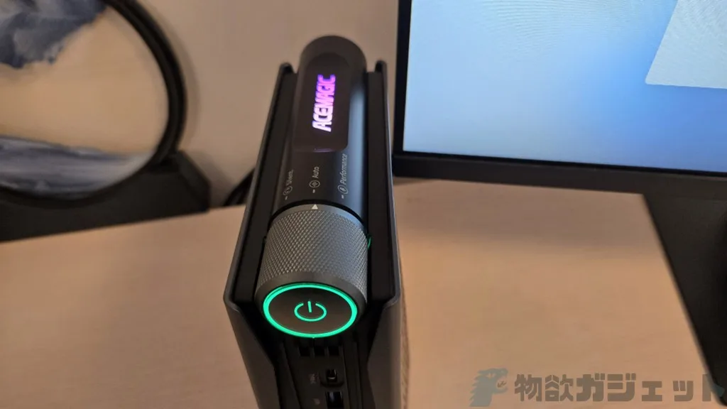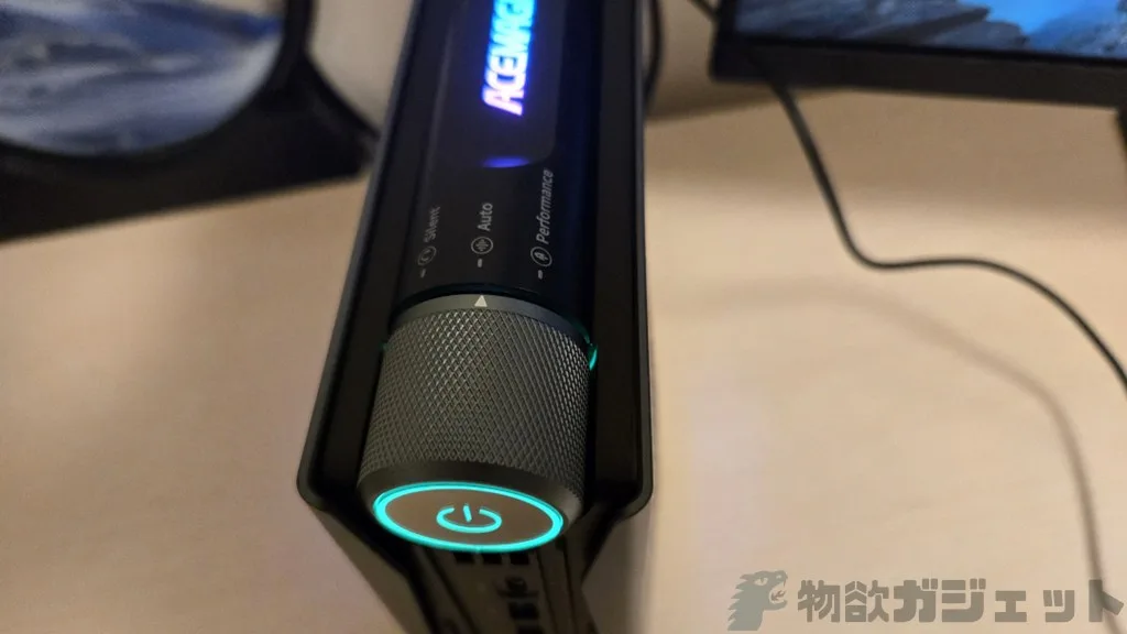 電源ボタン部はダイヤルのように回り、Silent、Auto、Performanceが選択可能。