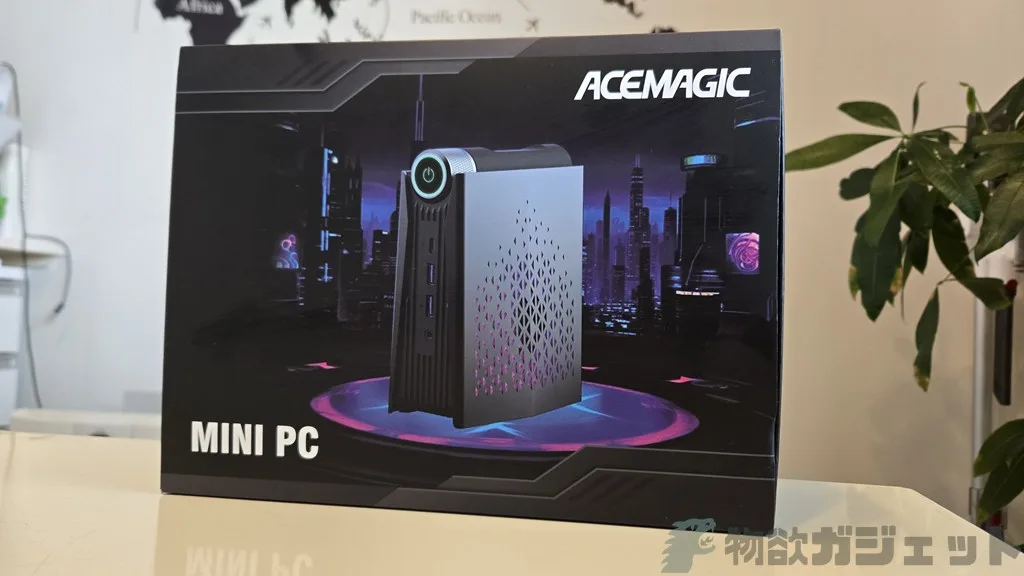 LEDライトが特徴的な、そしてミニPCとしては珍しい縦型筐体の「ACEMAGIC S3A」をレビューしていきます。