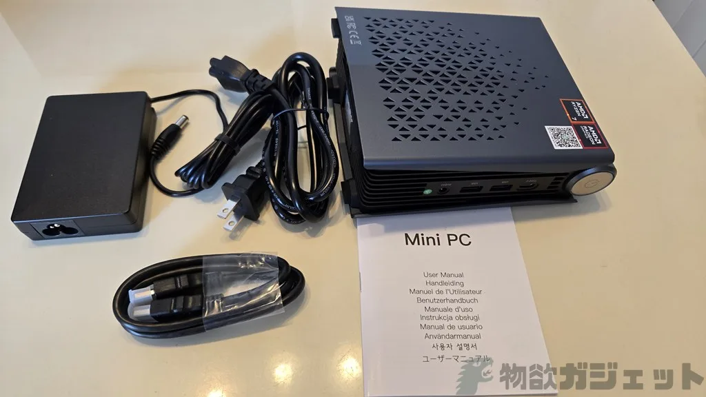 同梱物は、ACアダプタ、HDMIケーブル、マニュアルです。