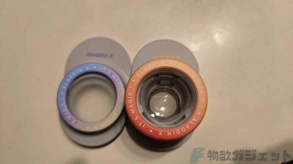 マグネット式で着脱できる、2種類のレンズ「Aladdin Lens A」 「Aladdin Lens B」が付属しています。