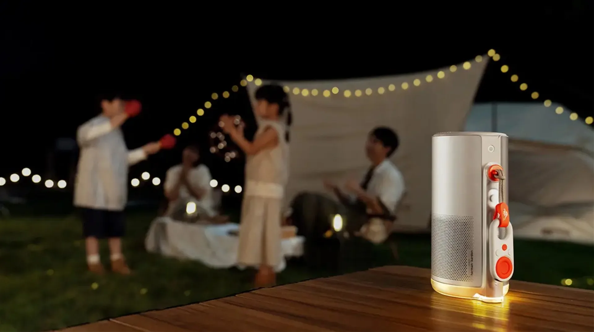 Aladdin Pocaシリーズは、フルHDの高画質映像を投影するプロジェクター機能に加え、音響メーカーHarman Kardon製の高音質スピーカー、スタンド、ライト、この1台に搭載。