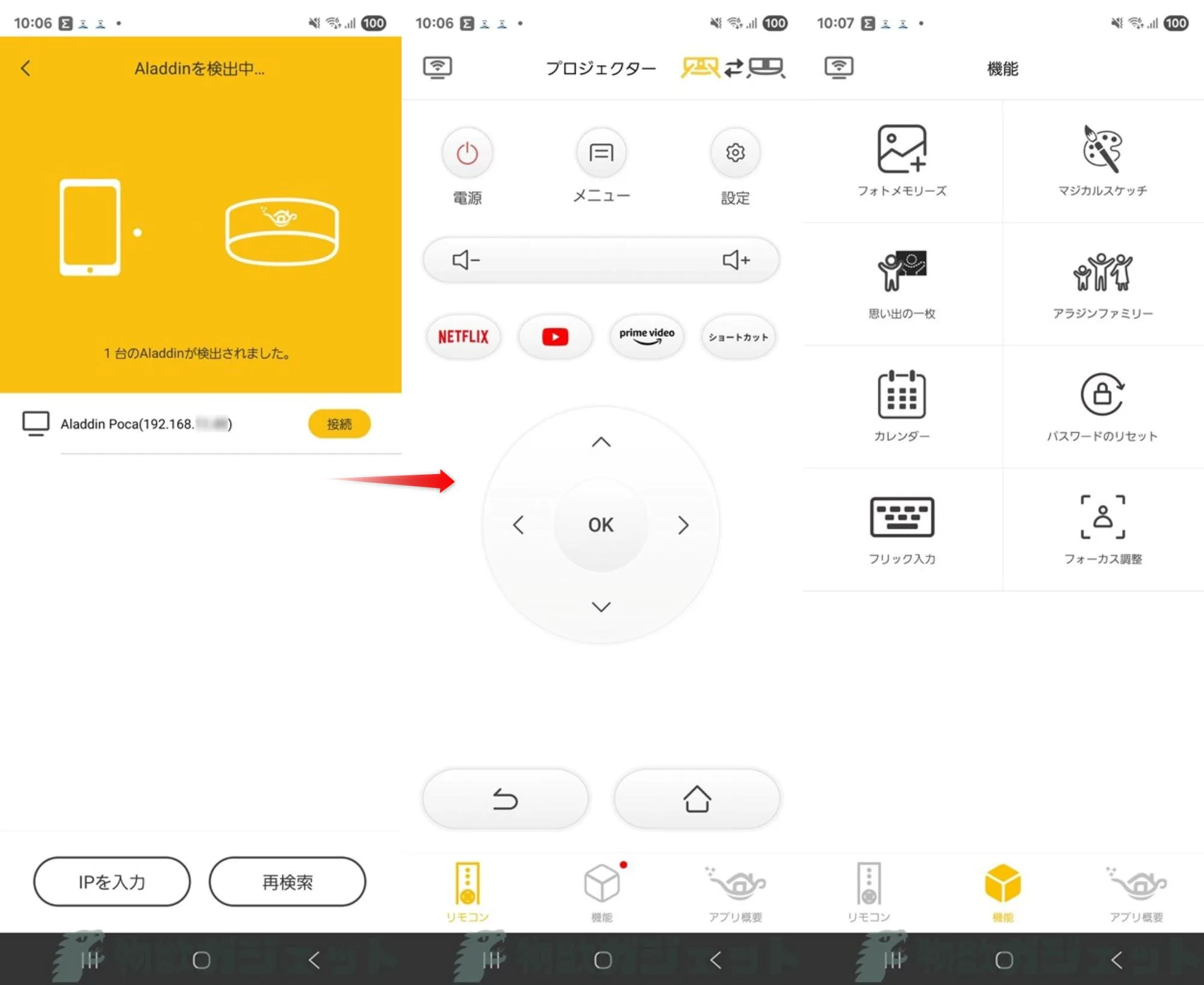 アプリを立ち上げると、すぐにAladdin Pocaが見つかりますので、タップすると上記右画面のようになります。