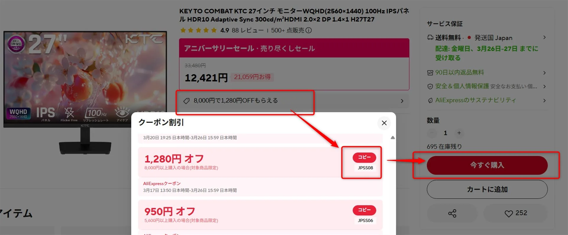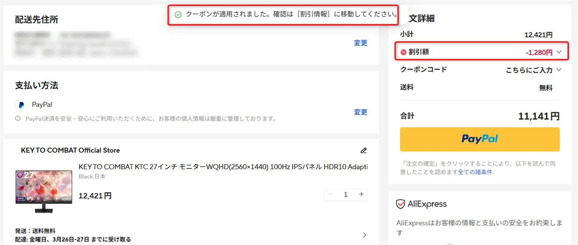 クーポン値引き額 |