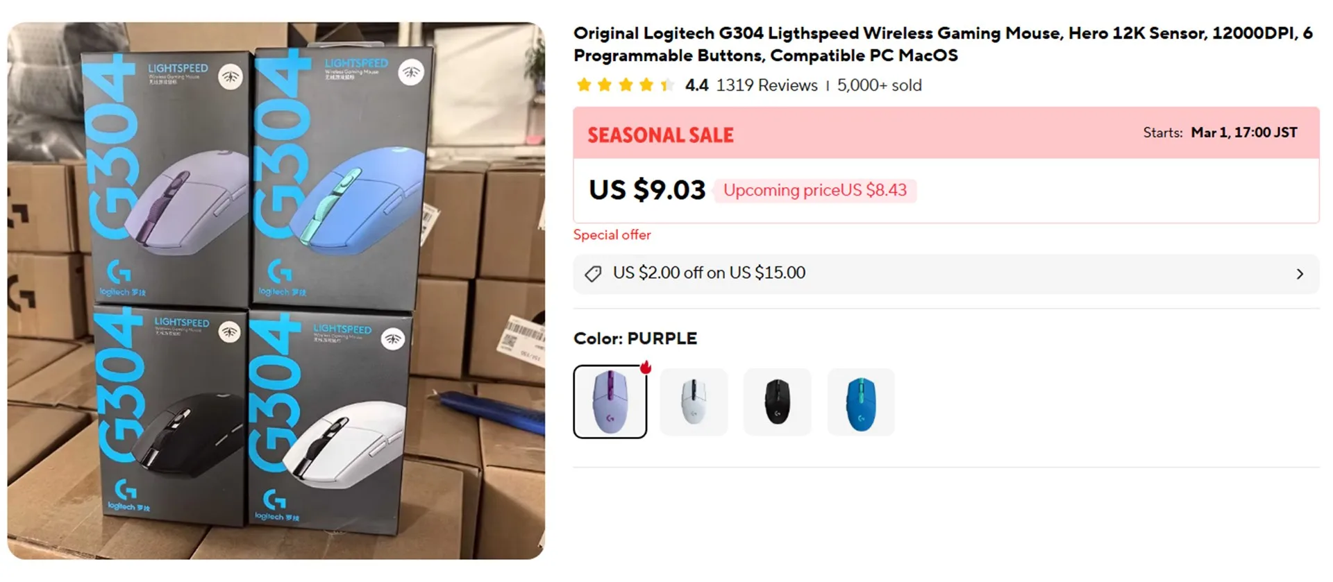 ロジクールのマウスG304が9ドルとか破格値です。日本では5000円ぐらいなので、1500円ちょいなので買っちゃおうかなと思うぐらい安い。