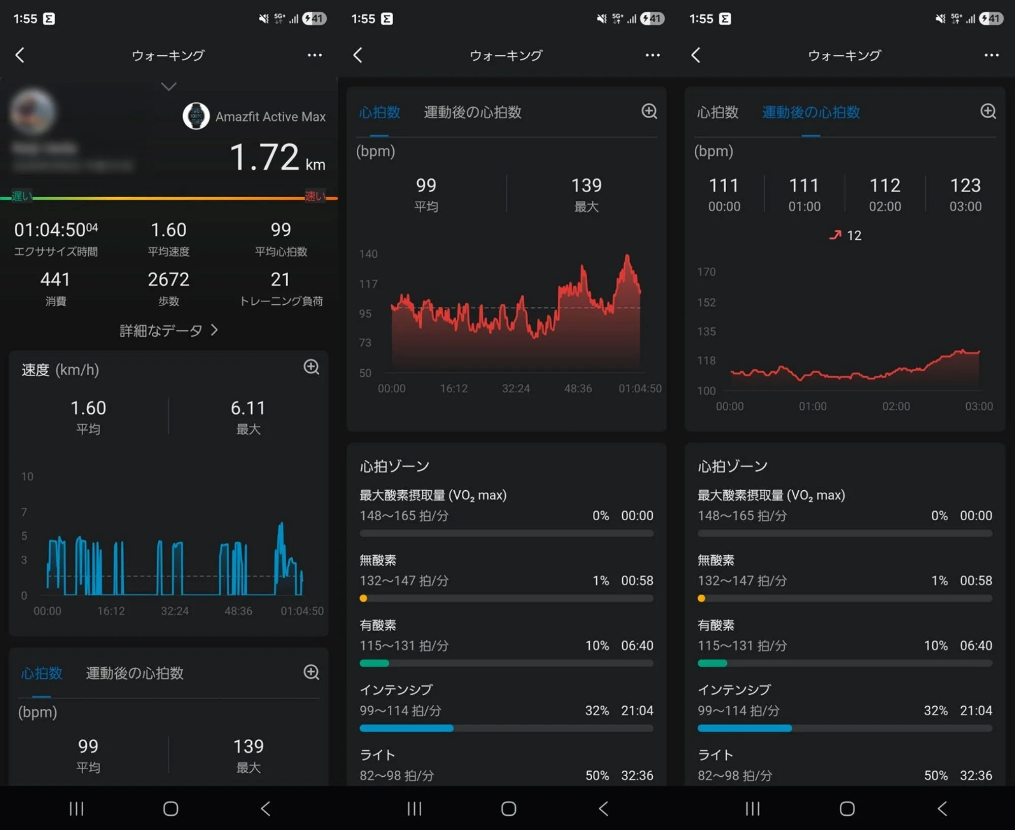 健康管理も当然秀逸で、Zeppアプリでワークアウトの細かいデータや、歩数、睡眠等もしっかりとデータが取れます。