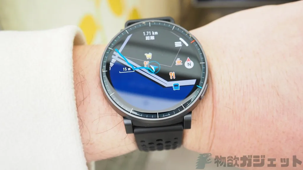 ターンバイターンナビ対応ですし、更に4GBのストレージを内蔵している為、複数のオフラインマップの保存が可能。またお得意のGPT-4o統合AIによる音声操作も可能で、高精度なGPS測位もできる。こうしたAmazfitでは上位モデルの機能を詰め込んで2万円台という価格であることを考えれば、トータルの満足度は高いスマートウォッチです。