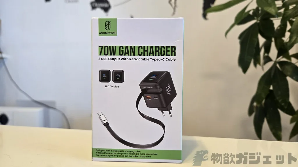 スマホ/PC等の周辺機器を発売しているASOMETECHから発売されている、「ASOMETECH 70W 充電器CH055-PQ」を買ってみました。これディスプレイ付きでどのポートで何ワットで充電しているか分かる優れもの。