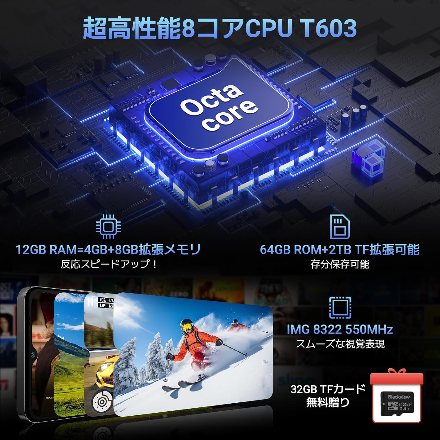 RAMも物理的には4GBで、仮想RAMで+8GBでトータル12GB、ストレージは64GB。microSDカードも2TBまで利用可能。なお32GBのmicroSDカードが付属します。
