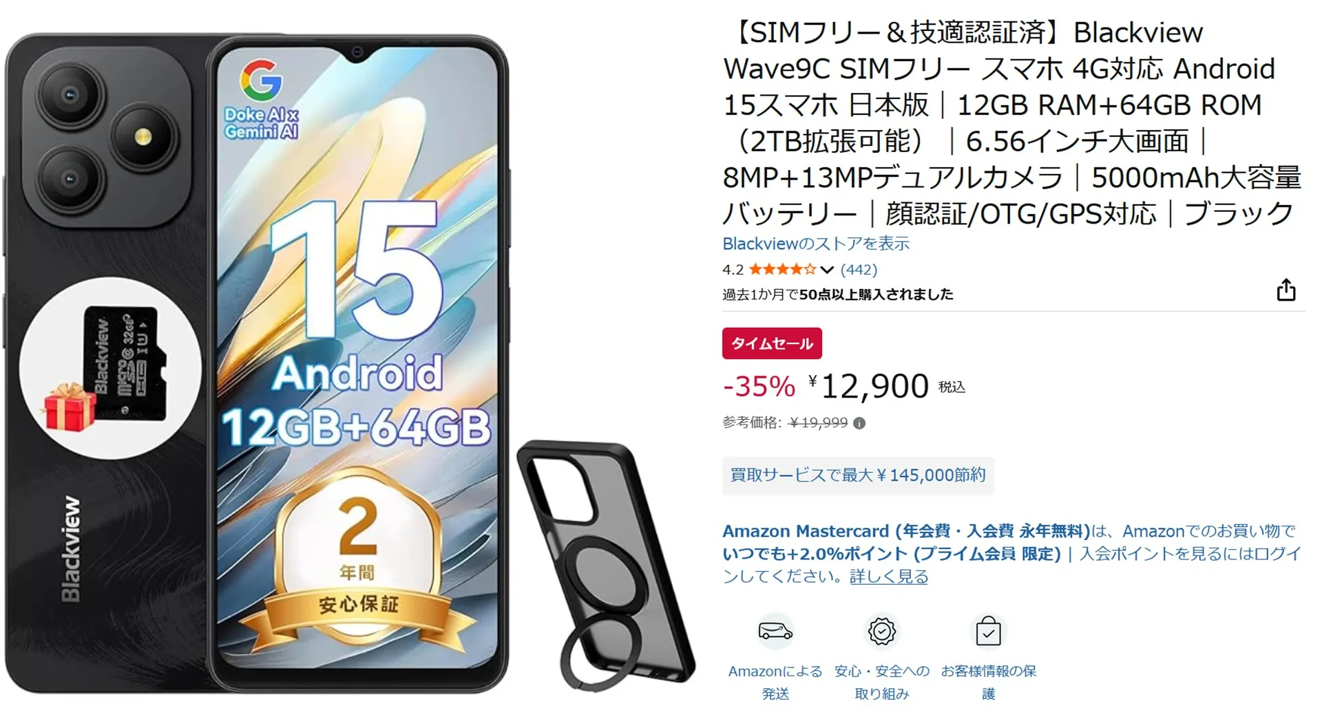 Blackview Wave9Cは、通常19,999円ですが、BlackviewのAmazonのブラックフライデーセールにて13,900円で販売中です。専用ケースとmicroSDカード32GBが無料で付いてきます。