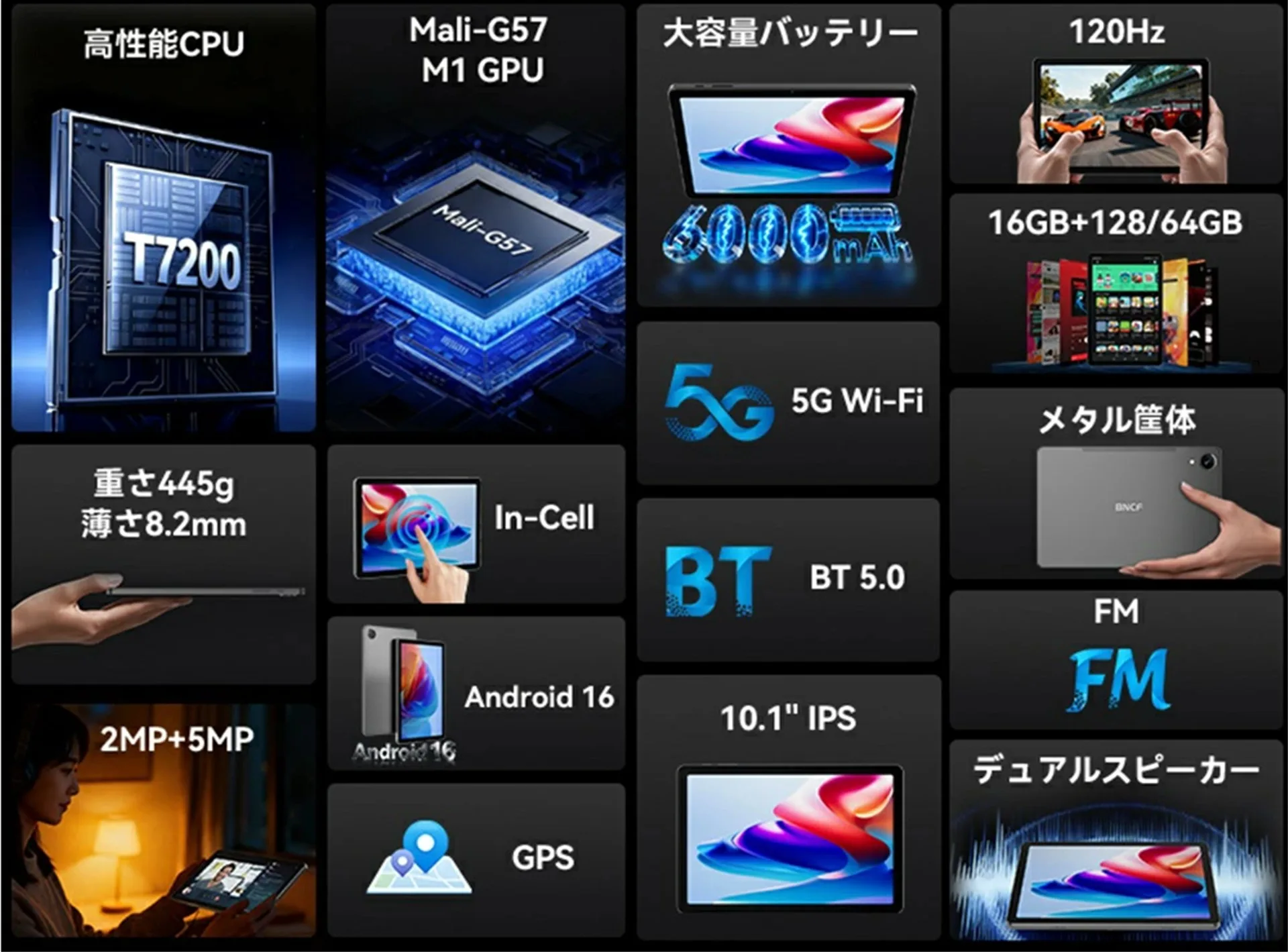 タブレットメーカーのBNCFから、10.1インチ のスタンダードサイズで、UNISOC T7200を搭載したAndroid 16タブレット「BNCF BPad 10 SE 」が発売されました。