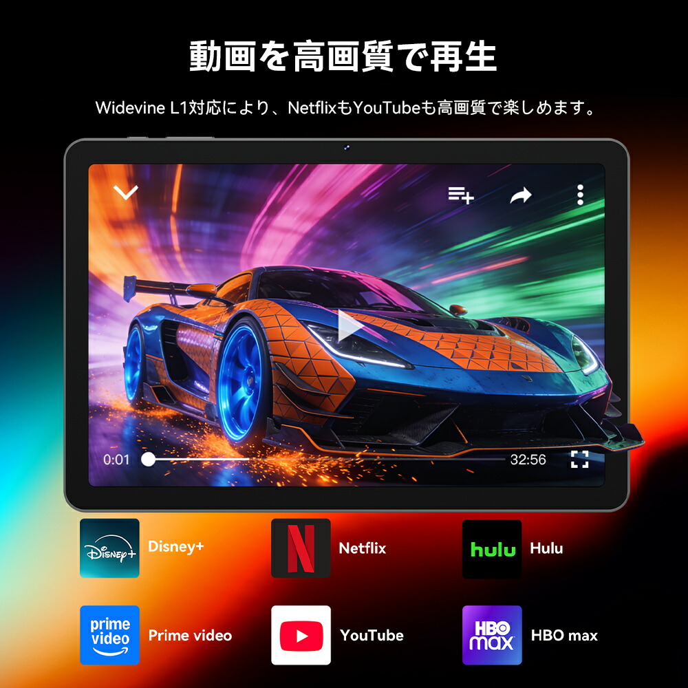 | ディスプレイ | 10.1インチ IPS液晶ディスプレイ 解像度:HD (1280 × 800) リフレッシュレート:最大120Hz Widevine L1対応 |