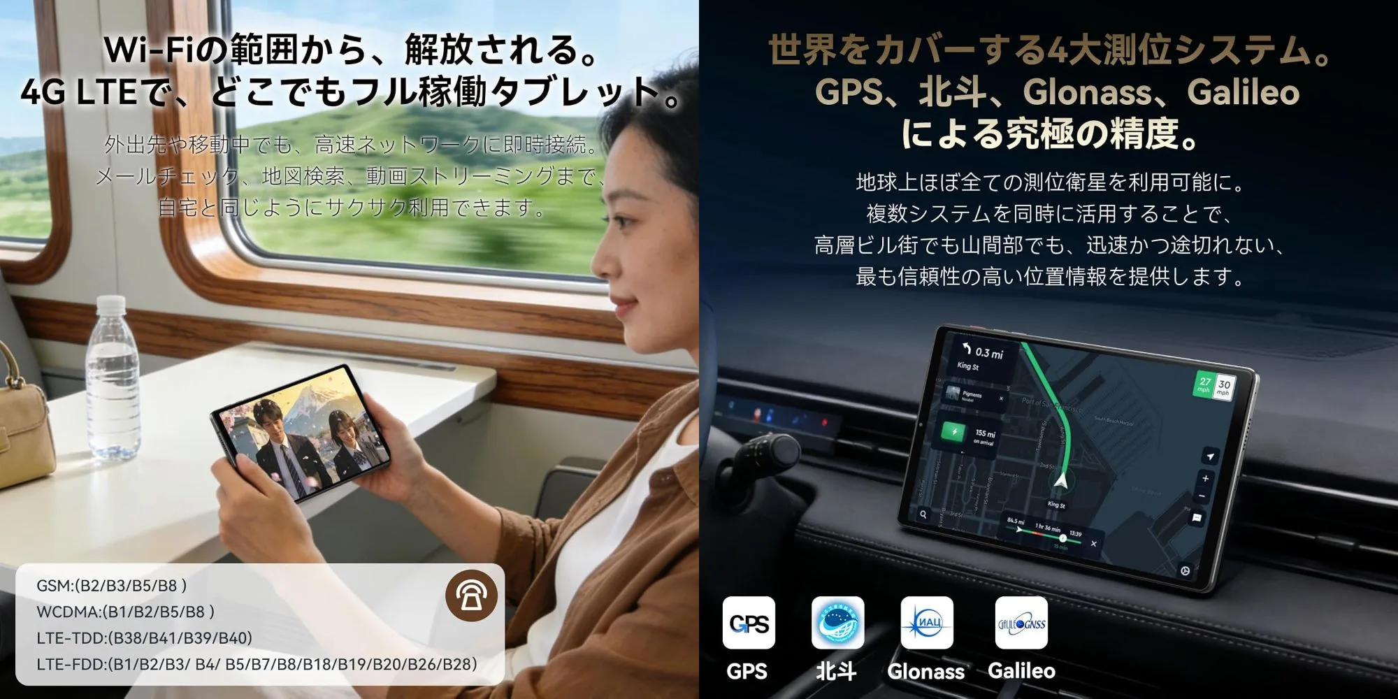 但しBPad GTの最大のメリットは、4G対応周波数帯で、B19(docomo)、B18(au)、B8(SoftBank)、B28(楽天モバイル)と、4キャリアプラチナバンドをサポート。このバンドは非常に電波の掴みがいいので、山間部、ビルの谷間などで電波を拾いやすい。