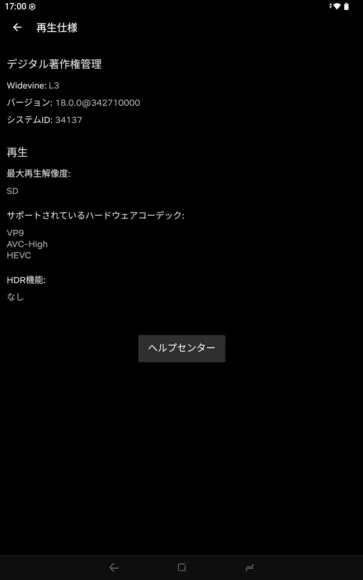 Widevineはネットフリックスで確認してみるとL3でした。つまりSD画質。