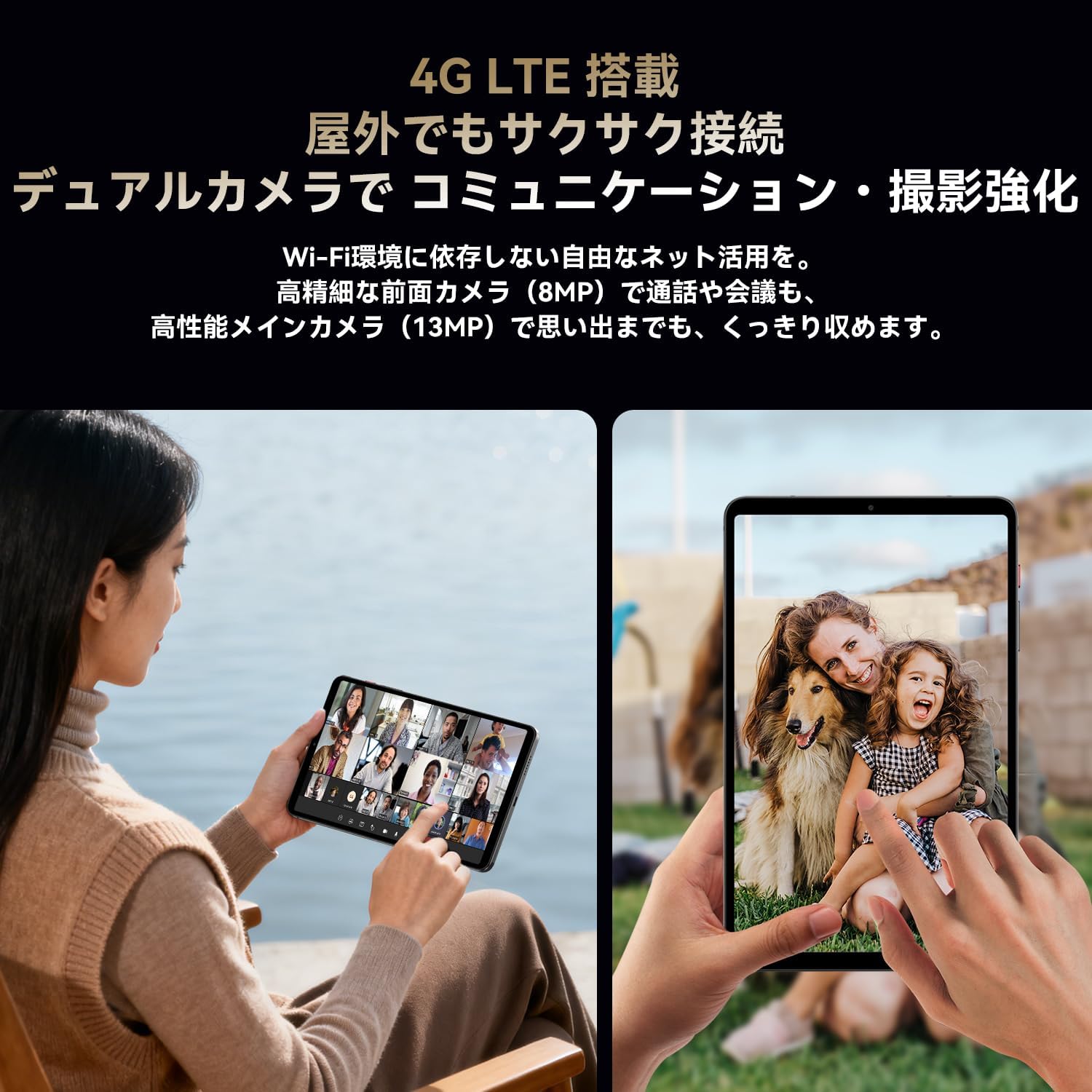 BNCF BPad T1 は4G LTE対応です。そのため、SIMカードを入れて外に持ち出せば、WiFi環境以外でもネット接続が可能。