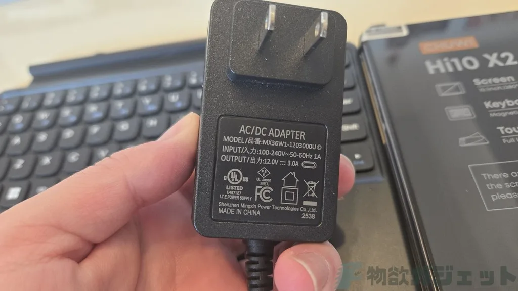 ACアダプタは、PSEマークもありますね。USB Type-C接続で12V-3Aだから36W出力。