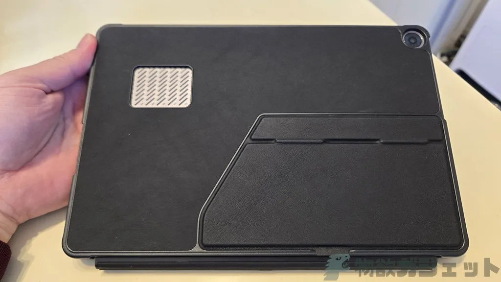本体にはカバーが付属しており、背面は無段階調整ができるスタンドになります。