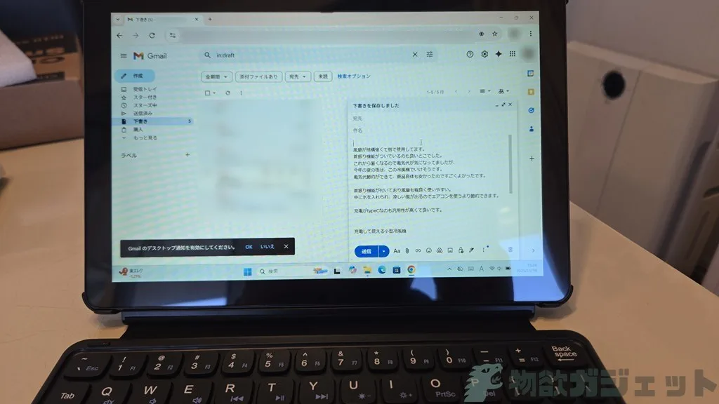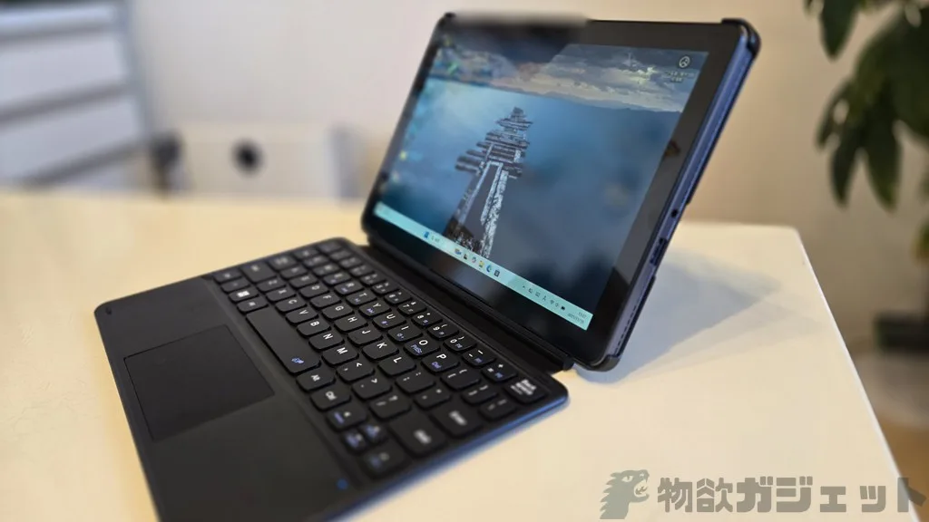 着脱式の専用キーボードがセットで普段は軽量なWindows 11タブレットとして動画やネットを楽しみつつ、キーボードを装着してノートPCとしてWord/Excel等のドキュメント作成やメール返信もこなせます。