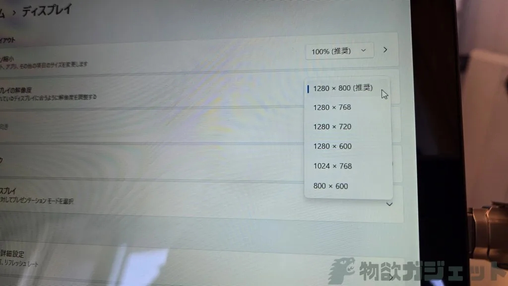 ディスプレイは視野角の広いIPS液晶で解像度は1280×800。ここは価格と実用性のバランスのスペック。