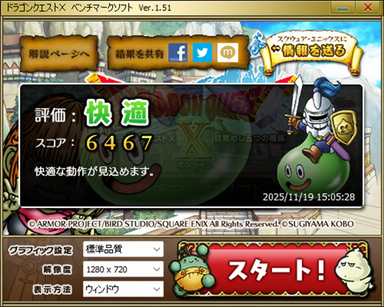 続いてドラゴンクエストX ベンチマークでは、快適となりました。