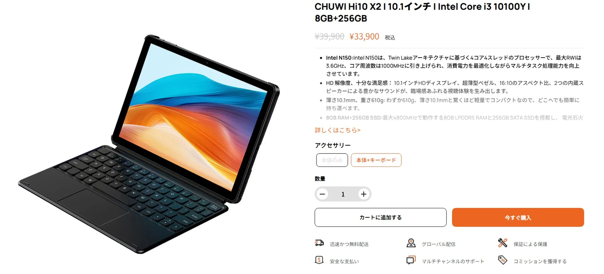 CHUWI Hi10 X2はCHUWI公式ストアで、本体+キーボード付きで33,900円では販売中。