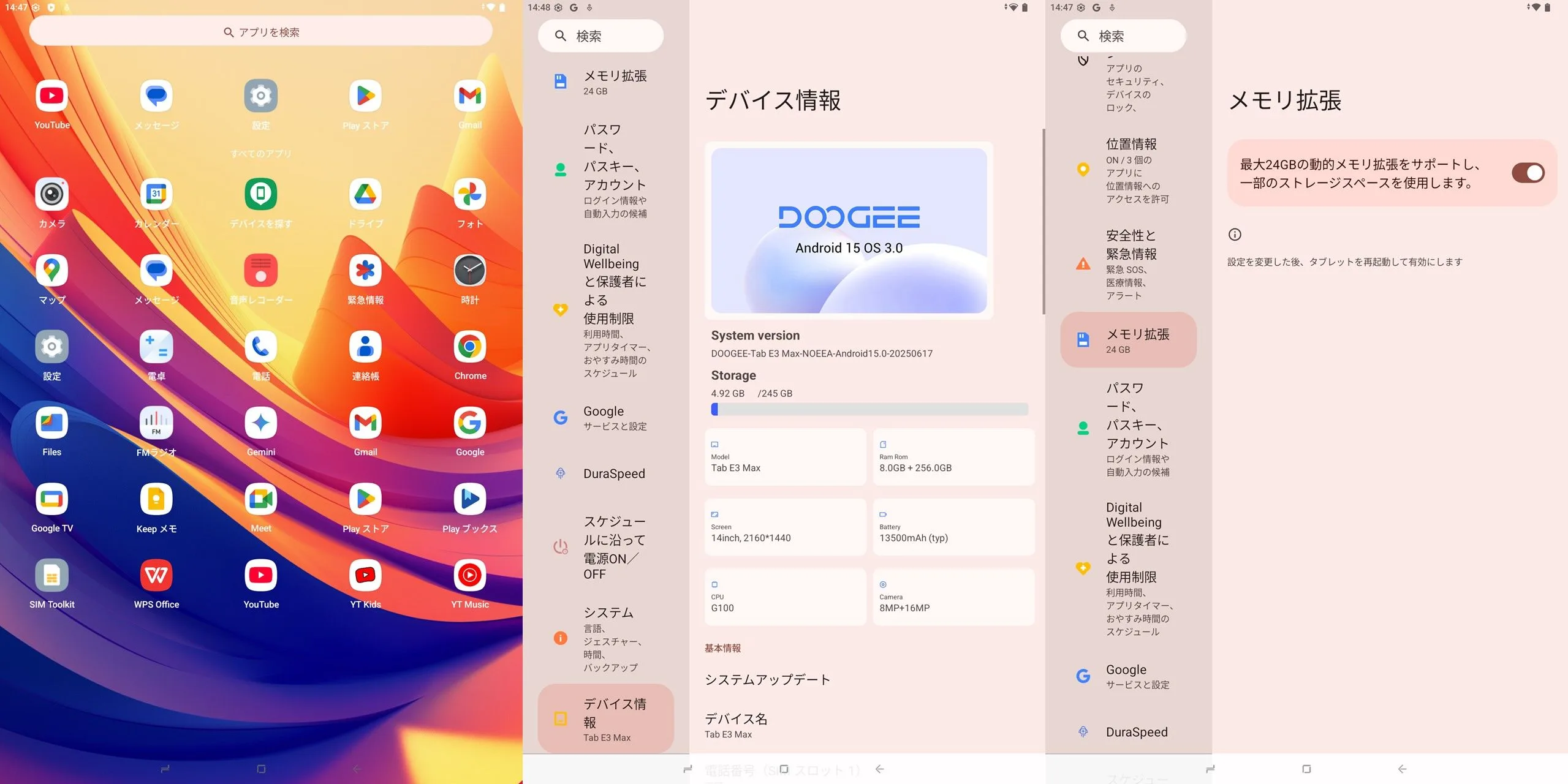 14インチの「DOOGEE E3 Max」は、もはや「Android版ノートPC」と呼ぶべきレベルで、A4用紙を超える14インチの超大型ディスプレイを搭載した、規格外のAndroidタブレットです。