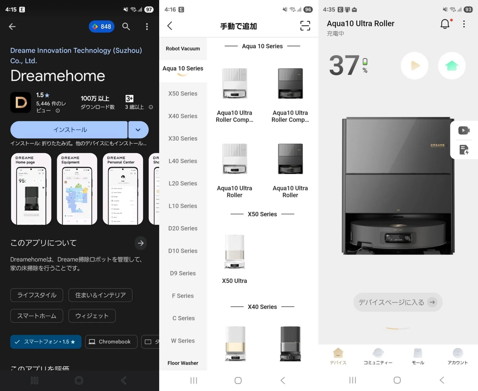 アプリはDreamehomeです。Google Pay(Playストア)/App Storeで検索してインストールしておきます。