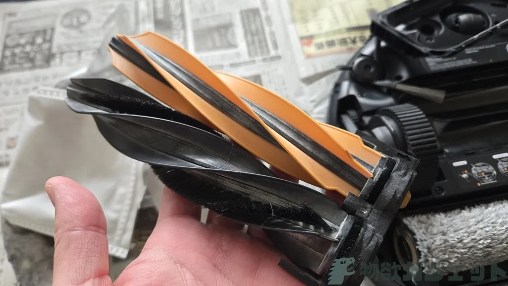 ロボット掃除機のメンテナンスでなにが面倒かというと、月に1回ぐらいはこうしたブラシに付いた髪の毛を私の場合はカッターやハサミで切って取り除く必要があるのです。それが限りなくゼロに近いというのはメンテナンスフリーと言っても良いぐらい。これは楽。