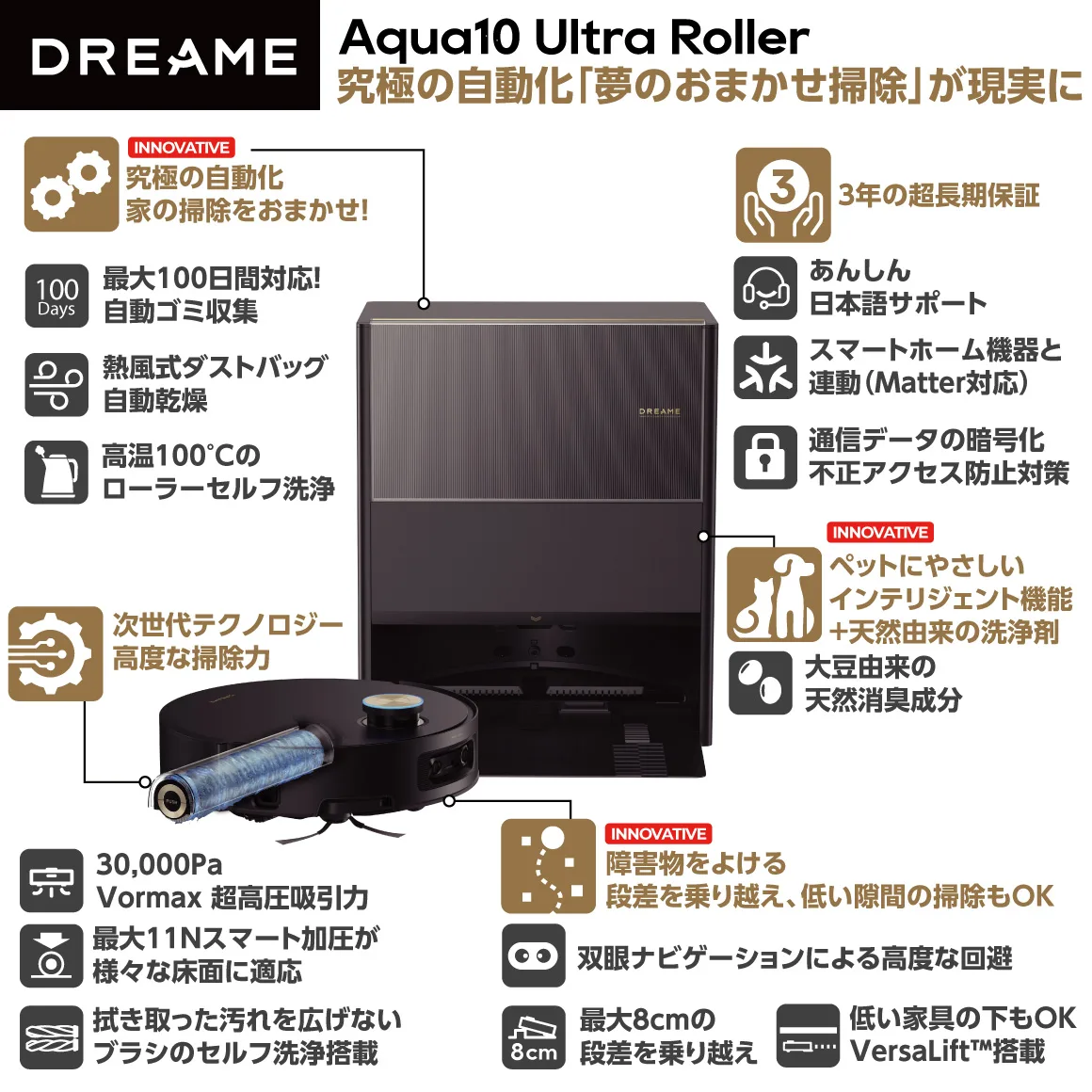 DREAME Aqua10 Ultra Rollerロボット掃除機の特徴