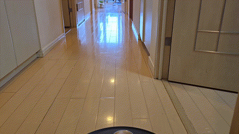 基本的には上記のように、頭がポコっと出てきてレーザー探知しているのですが、背が低いものを通過する際は、ちゃんと引っ込めて掃除してくれます。これが可愛い。