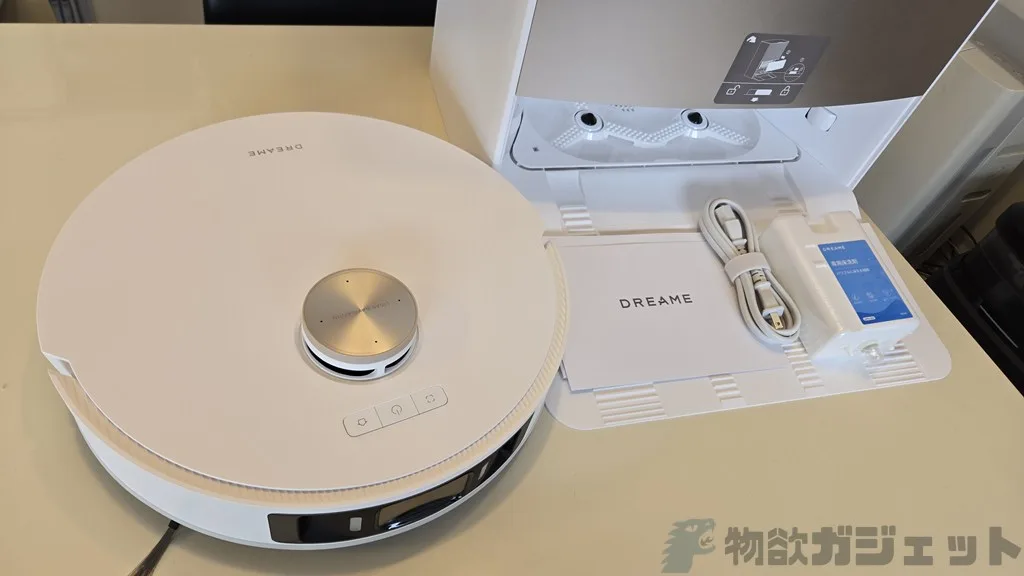 | ロボット本体仕様 | サイズ: 350 × 350 × 103.8 mm 重量: 4.3 kg バッテリー容量: 6,400 mAh ダストボックス容量: 300 mL 水タンク容量: 80 mL 最大段差乗り越え: 2 cm |