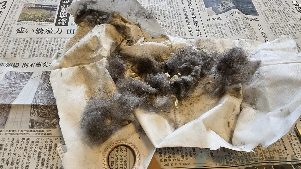 ちょっともったいないですが、紙パックを開けて確認してもみましたが、3日間の掃除分ですが、どっさり取れています。