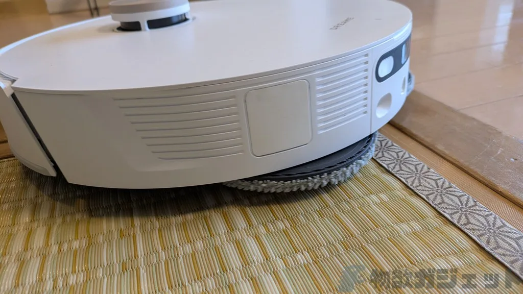 吸引モードも水拭きもどっちも同時に実施も出来ます。カーペットや絨毯、畳など「これは水拭きしちゃいけない」と判断すると、自動でモップパッドをリフトアップして、水濡れを防いでくれます。