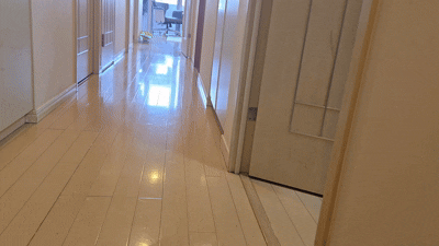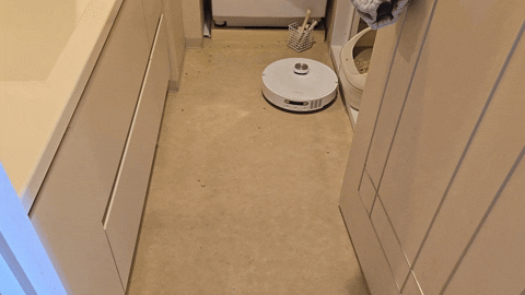 しかしL20 Ultra Completeは、こんな感じでしっかりと加圧してモップ掛けしてくれるので、常にピカピカ。壁際もモップエクステンドでしっかり隅まで拭き掃除してくれています。
