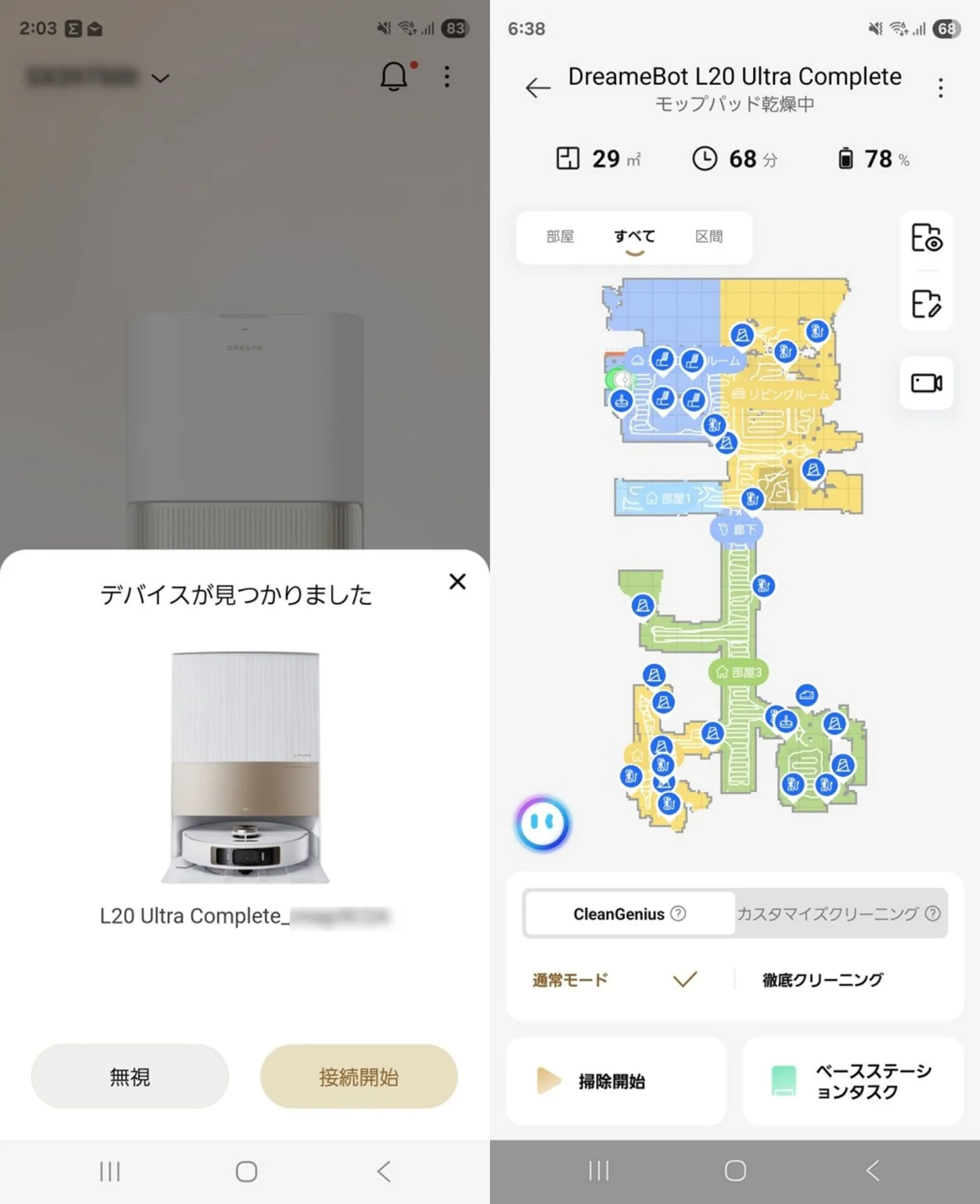 WiFi接続しなくても使えますが、ロボット掃除機はWiFiでスマホ連携してこそ真価を発揮しますので、基本的にはインストール必須というレベル。