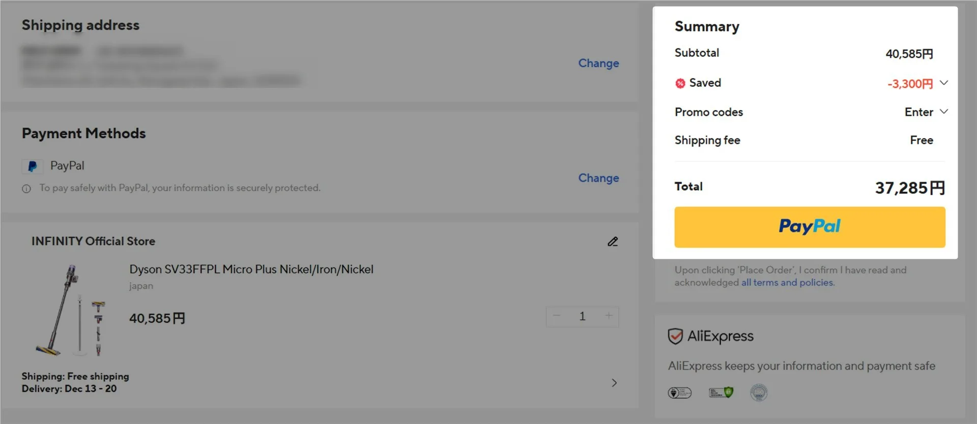 そうなると8500円ほどAliExpressのほうが安くなります。