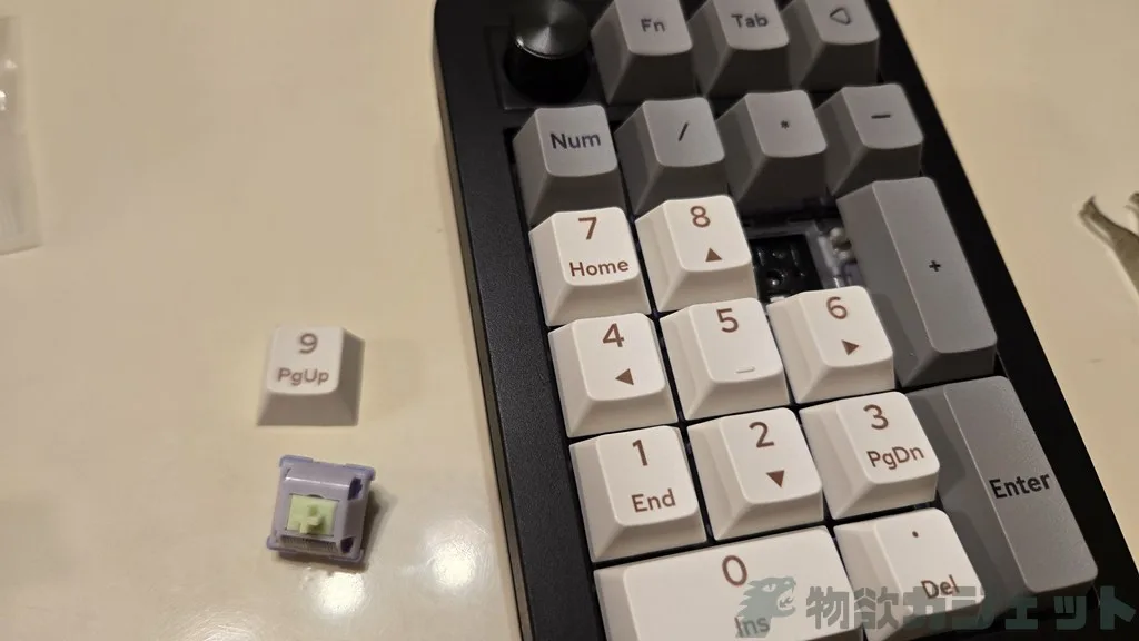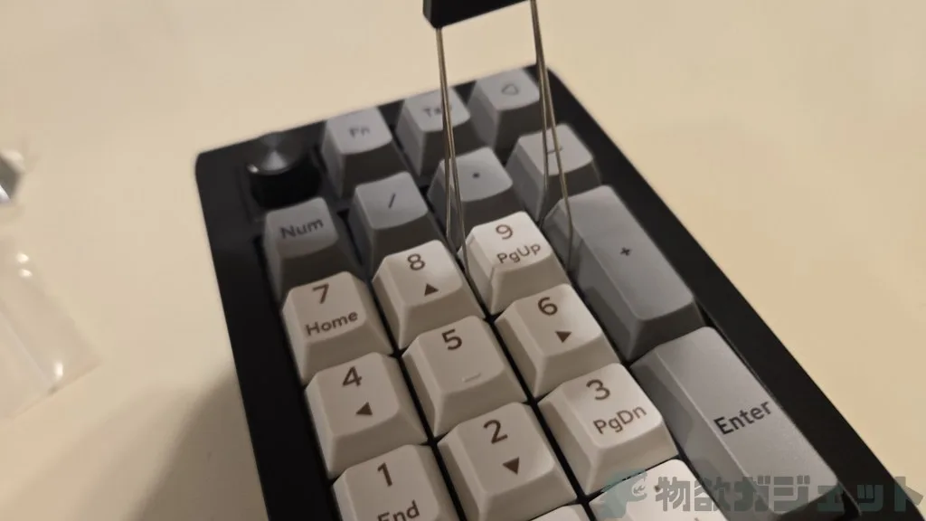 またキー自体もピンセットで取り外せるので、全部もしくは特定のキーだけ軸の打鍵感を変えるという事も可能です。