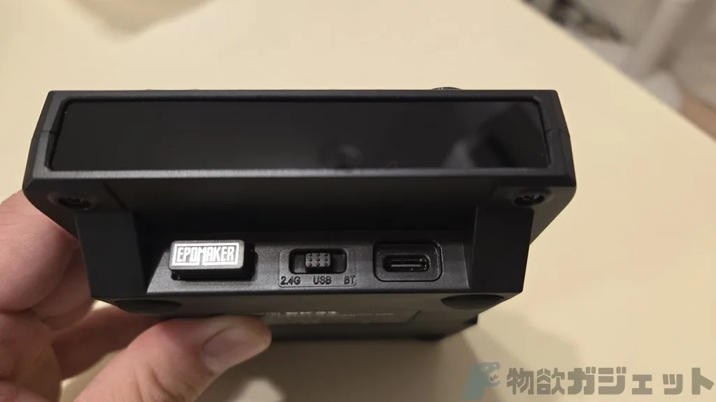 後部に、USBドングル、2.4GHz WiFi/有線/Bluetoothの切り換え、有線接続用USB Type-Cコネクタがあります。