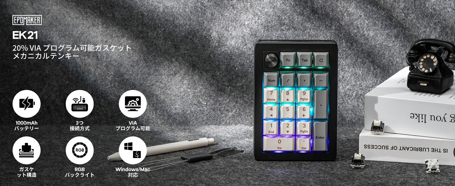 EPOMAKER EK21は、コンパクトながら高機能なメカニカルテンキーパッドです。
