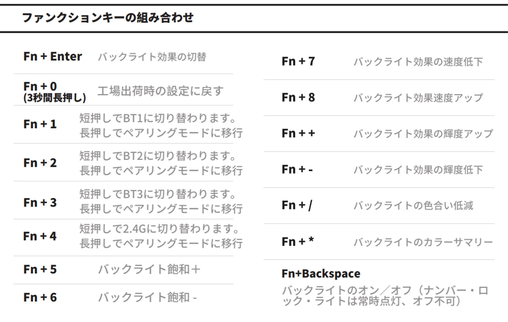 Fn+※※でショートカットキーの一覧があり、基本的にはこれを覚えるか、キーマッピングのカスタマイズをして自分なりのキーを作るかという事になります。