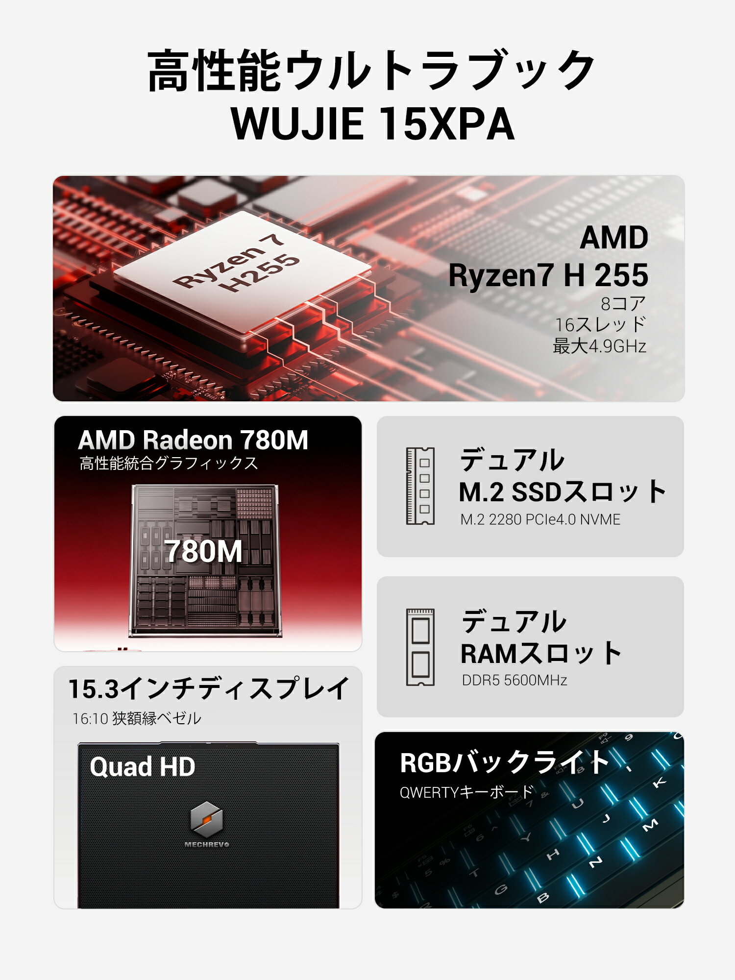 15.3インチの高解像度2.5K液晶に、強力なRyzen 7 H255プロセッサを搭載しつつ、重さ1.77kgと驚異的な軽さを実現した「FIREBAT MECHREVO 無界 15XPA 」が楽天市場でセールとなっています。